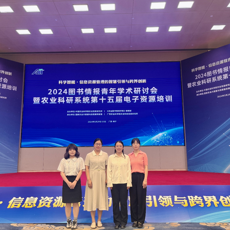 5月30日,由中国农业科学院农业信息研究所《农业图书情报学报》编辑部主办,国家农业大数据与信息服务联盟等机构协办的“2024图书情报青年学术研讨会暨农业科研系统第十五届电子资源培训”在广西南宁顺利召开。来自全国农业、农垦、畜牧、水产、图情等科研院所及高校的200余名领导、专家、科技人员参加会议。图书馆馆长戴红君一行参加此次会议。
